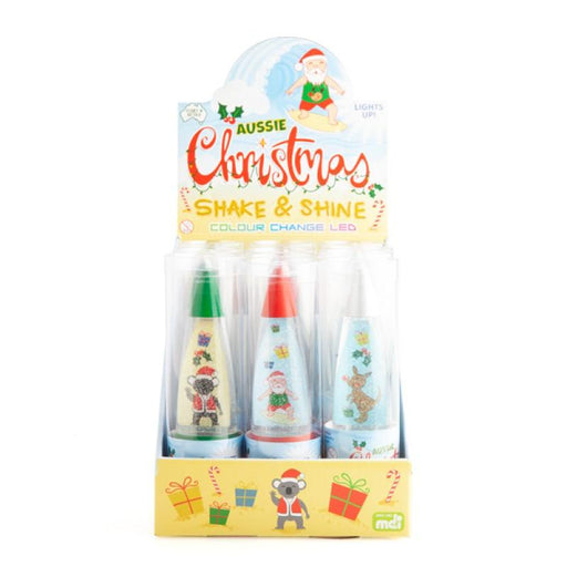 Mini motion lamp with colour change LEDs activated by shaking Christmas designs with an Aussie twist Full of glitter! Shuts off automatically afte...