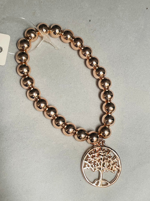 As a quality metal plated bracelet, this Tree of Life Charm Stretch Bracelet offers both durability and style. With an elastic design for easy fit and comfortable wear, it is also tarnish resistant for long-lasting shine. Perfect for any occasion, add this bracelet to your collection today! Colour - Rose Gold