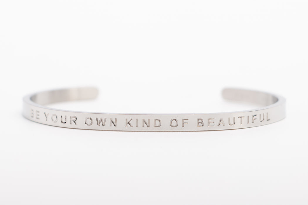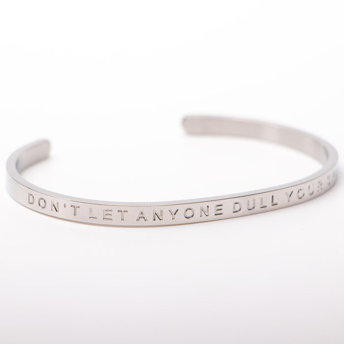 Stainless Steel Cuff Bangle with Empowering Mantra, hypoallergenic