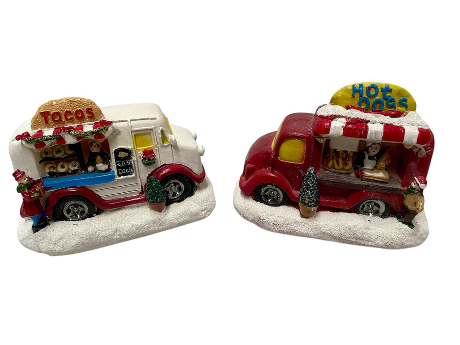 Get into the holiday spirit with our new Christmas Food Truck! Featuring a festive LED light, this truck comes in both white (taco) and red (hot dog) options. Perfect for adding a touch of fun to your decorations.
