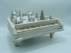 Beautiful White Piano with Winter Christmas Scene with Silver Accents, LED Lights and a spinning Tree with Train.