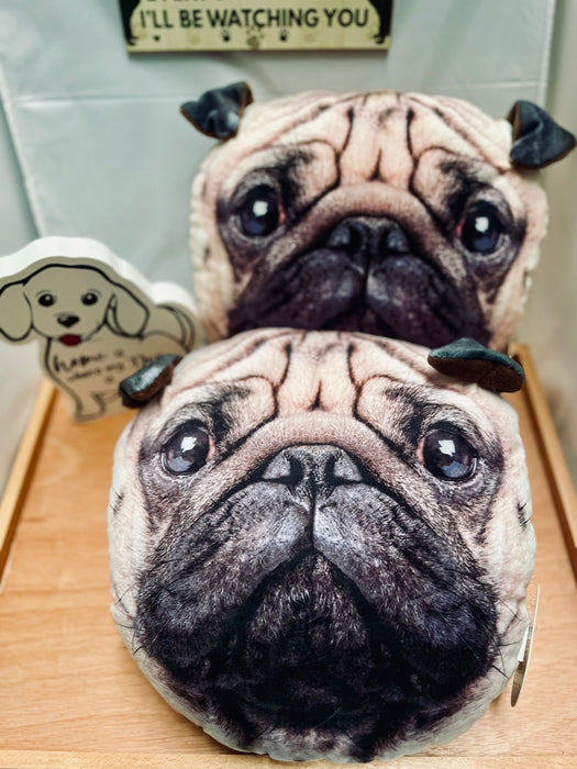 This super soft comfort touch pillow will please everyone. Made from a quality polyester and is very durable. The Pug Dog image is so detailed that you may have to look twice to make sure it isn't the real thing!