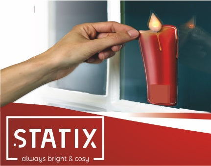 STATIX is the safe alternative for open fire candles to spread a cosy ambiance in any occasion, as these double-sided, colourful window decorations spread a natural, flickering light. STATIX is printed on high-quality, adhesive foil and therefore easily applied on any smooth surface like mirrors, doors and cabinets. After the holiday season, STATIX can be removed without any residue and be reused next year.